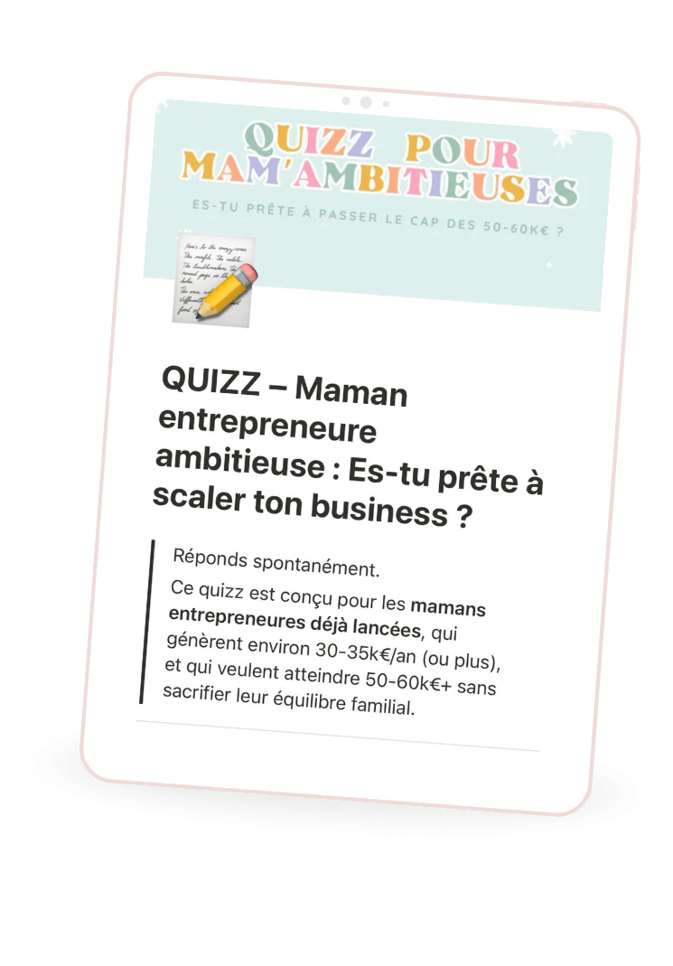 Imagine ton business qui tourne à 50–60k€/an, tout en étant dispo pour chercher tes enfants à l’école, profiter de ton couple et retrouver du temps rien que pour toi.