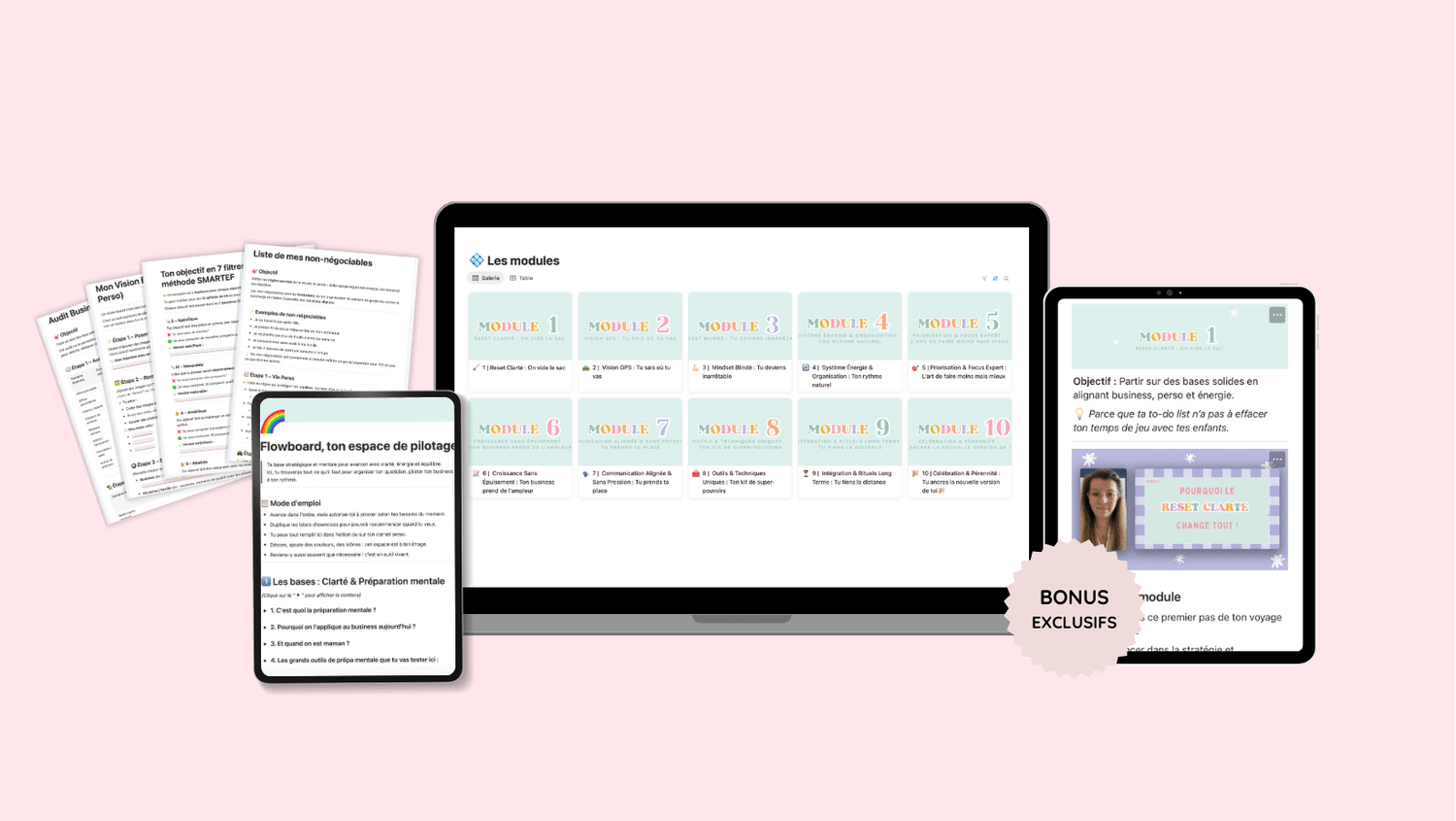 Ce que tu vas apprendre, étape après étape pour transformer ton quotidien de maman-CEO.